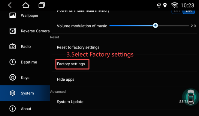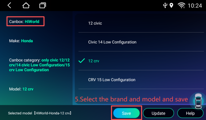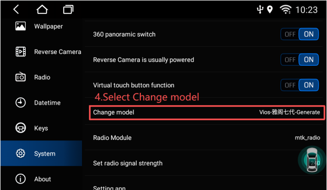 Step5:Swipe down to select vehicle type(右侧下滑选择设置车型)